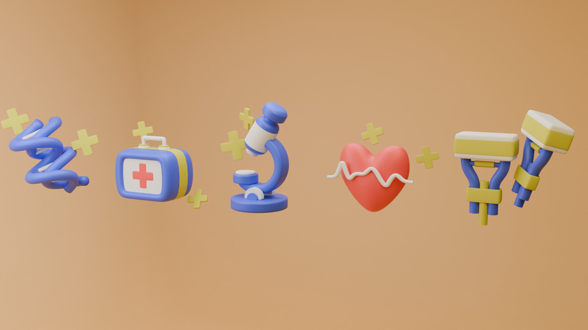 Aset 3D alat medis ini mencakup kotak P3K berwarna merah dari plastik tahan benturan dengan kompartemen untuk perban dan alat medis dasar, monitor detak jantung portabel dengan layar LCD dan konektivitas wireless, mikroskop laboratorium dengan lensa pembesaran tinggi dan pencahayaan LED, serta alat bantu patah kaki berupa splint dan gips untuk menjaga kestabilan kaki dengan pengikat. Keempat aset ini dirancang untuk simulasi atau visualisasi alat medis dalam berbagai konteks pelatihan dan presentasi.